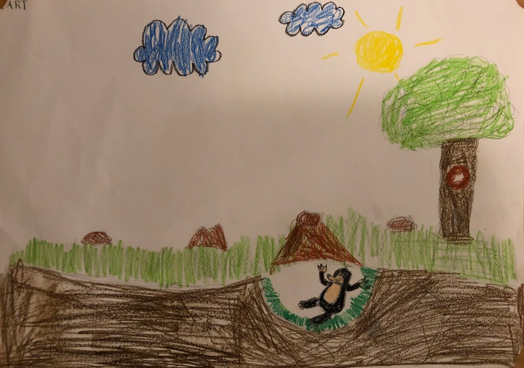Eines der Aufgaben war die Geschichte des Maulwurfs Grabowski zu hören (Audiodatei wurde Euch zur Verfügung gestellt) und ein dazu passende Bild zu erstellen. Et voilà!